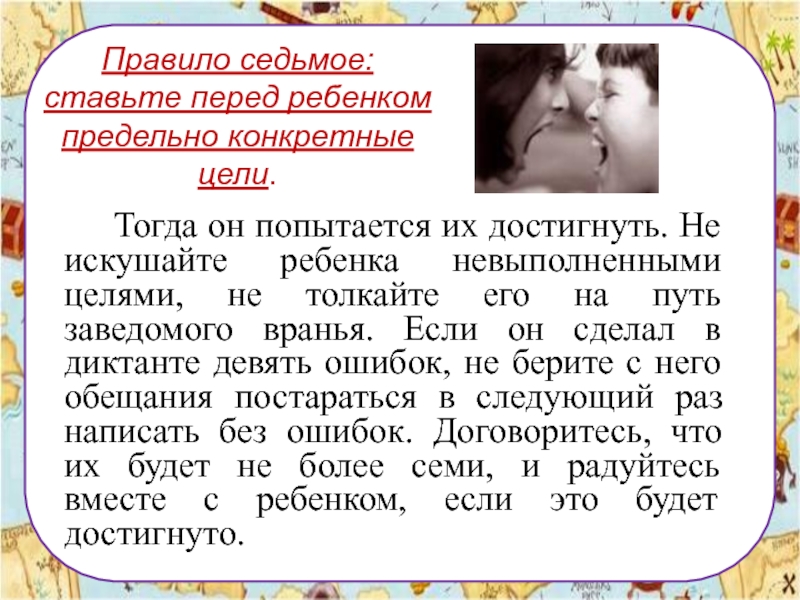 Слайд 36Правило седьмое: ставьте перед ребенком предельно конкретные цели.