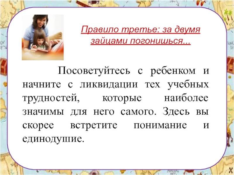 Слайд 32Правило третье: за двумя зайцами погонишься...
