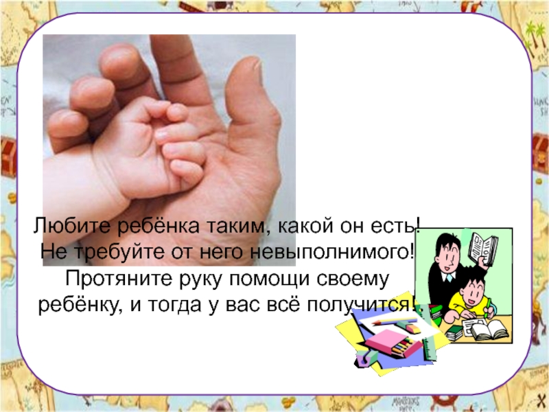 Слайд 37Любите ребёнка таким, какой он есть! Не требуйте от него невыполнимого!