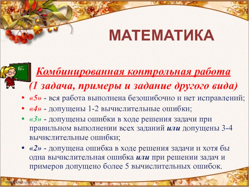 «2» - допущена ошибка в ходе решения задачи и хотя бы одна вычислительная ошибка или при решении задач и примеров допущено более 5 вычислительных ошибок.