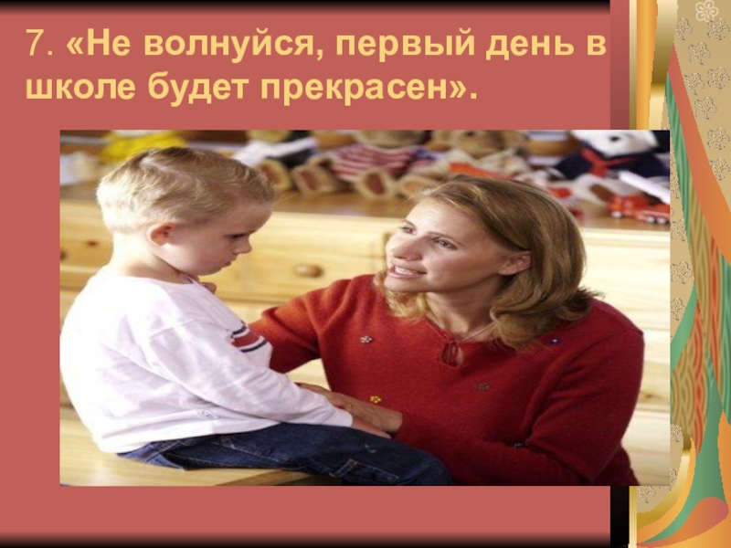 Слайд 87. «Не волнуйся, первый день в школе будет прекрасен».