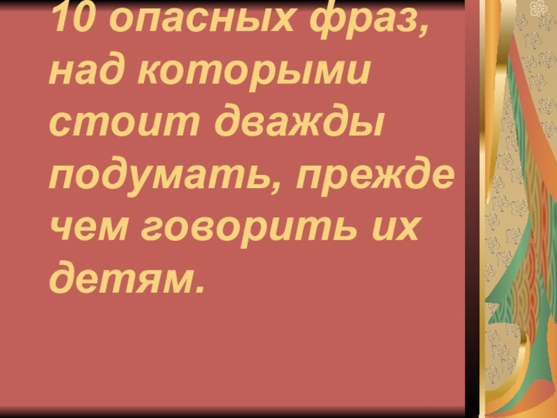 Презентация, доклад на тему Родительское собрание на тему 10 опасных фраз, которые нельзя говорить детям
