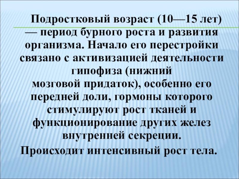 Слайд 3 Подростковый возраст (10—15 лет) — период бурного роста и