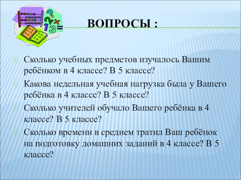Какова недельная учебная нагрузка была у Вашего ребёнка в 4 классе? В 5 классе?