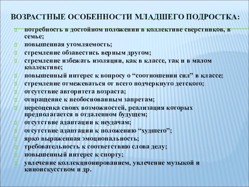Слайд 4ВОЗРАСТНЫЕ ОСОБЕННОСТИ МЛАДШЕГО ПОДРОСТКА: