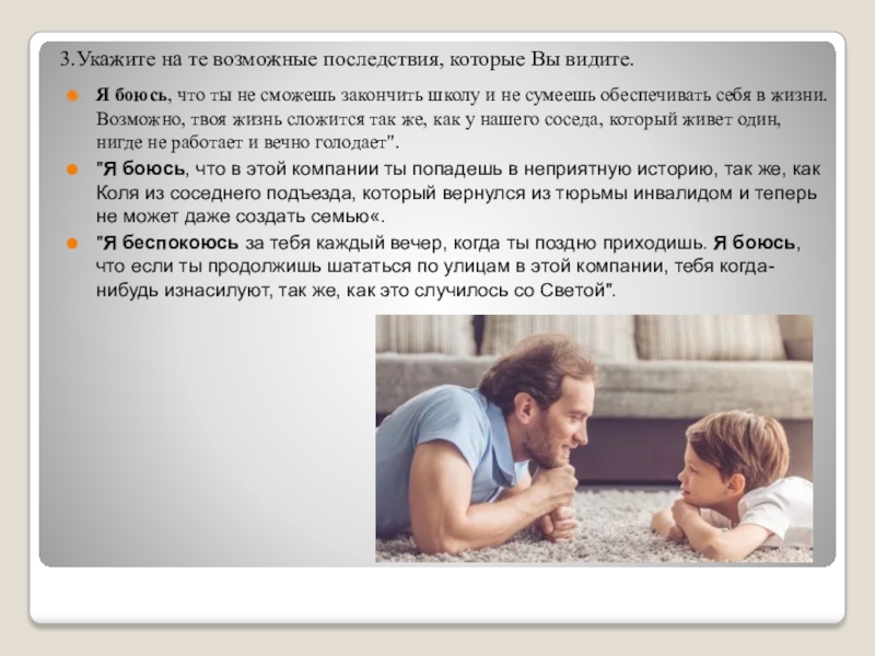 "Я хочу, чтобы ты хорошо закончил школу, но я знаю, что не могу все время контролировать тебя - ты сам отвечаешь за это и за свою последующую жизнь".