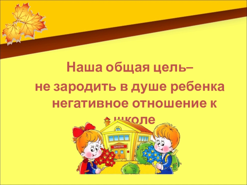 Наша общая цель– не зародить в душе ребенка негативное отношение к школе
