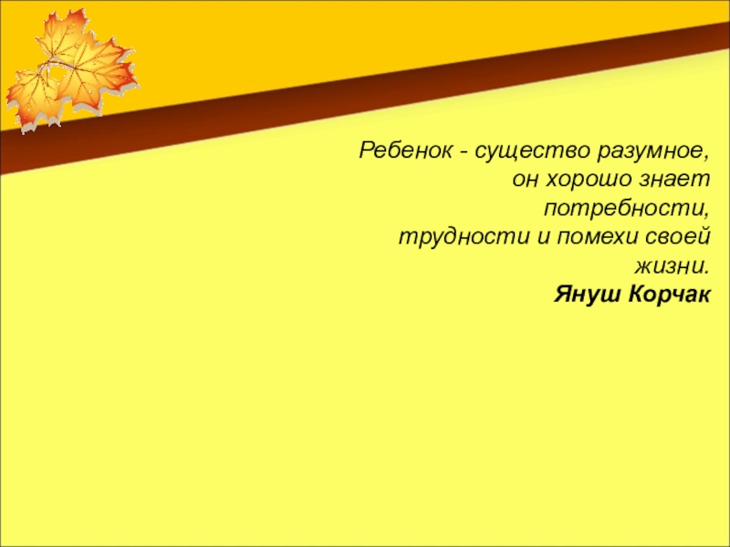 Ребенок - существо разумное,  он хорошо знает потребности,  трудности и помехи своей жизни. Януш Корчак