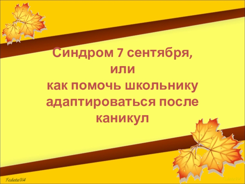 Слайд 1Синдром 7 сентября, или как помочь школьнику адаптироваться после каникул