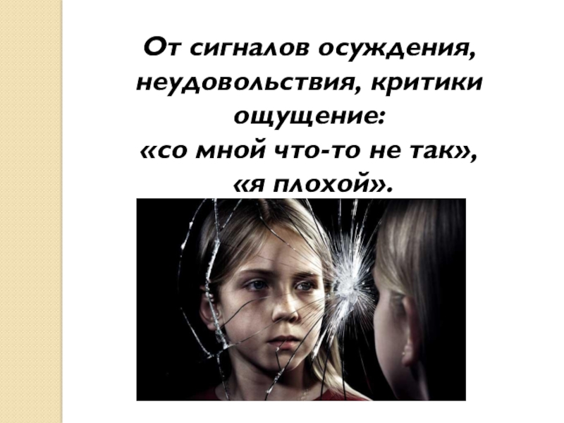 От сигналов осуждения, неудовольствия, критики   ощущение:  «со мной что-то не так»,  «я плохой».