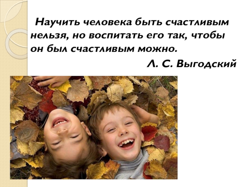 Научить человека быть счастливым нельзя, но воспитать его так, чтобы он был счастливым можно.Л. С. Выгодский