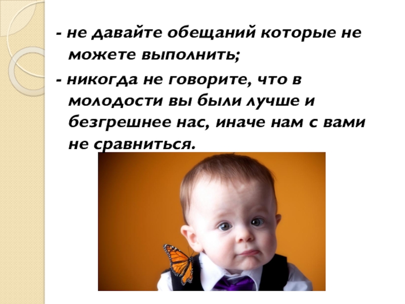 Слайд 9- не давайте обещаний которые не можете выполнить;