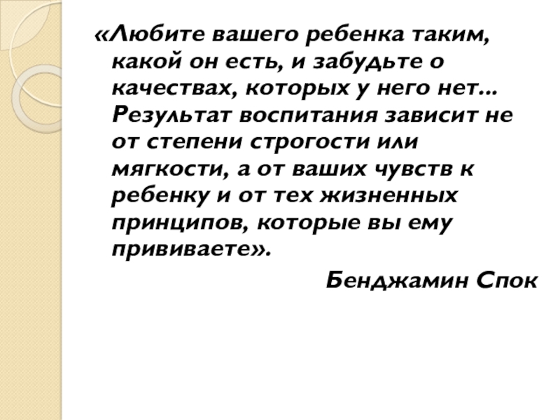 Слайд 10«Любите вашего ребенка таким, какой он есть, и забудьте о качествах,