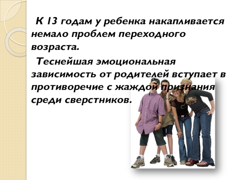 Слайд 3 К 13 годам у ребенка накапливается немало проблем переходного