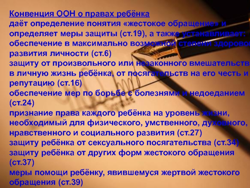 защиту ребёнка от других форм жестокого обращения (ст.37)