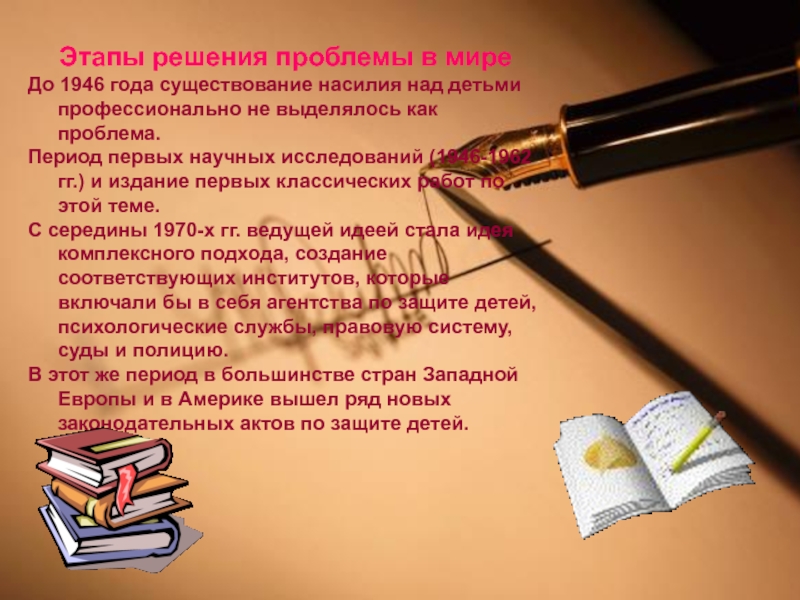 С середины 1970-х гг. ведущей идеей стала идея комплексного подхода, создание соответствующих институтов, которые включали бы в себя агентства по защите детей, психологические службы, правовую систему, суды и полицию.