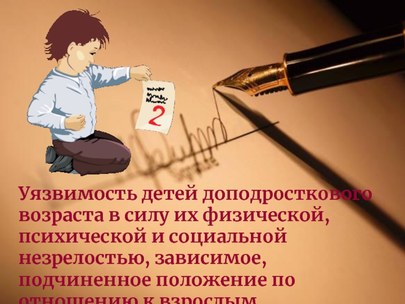 Слайд 13Уязвимость детей доподросткового возраста в силу их физической, психической и социальной