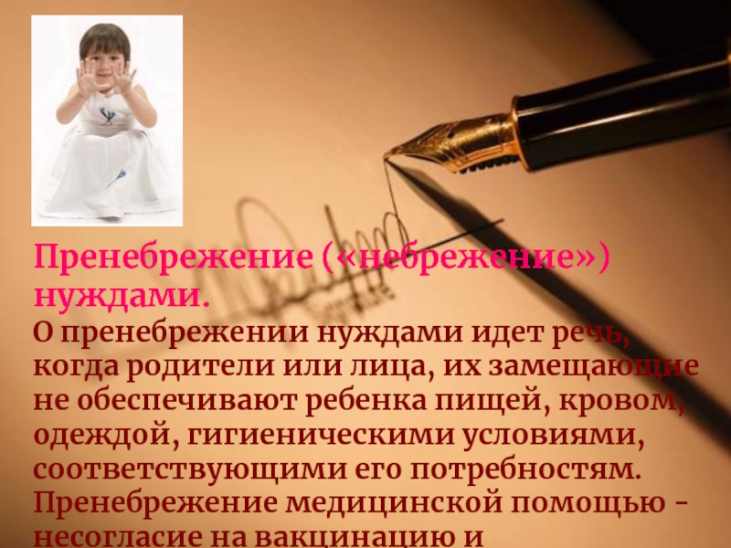 Слайд 10Пренебрежение («небрежение») нуждами.