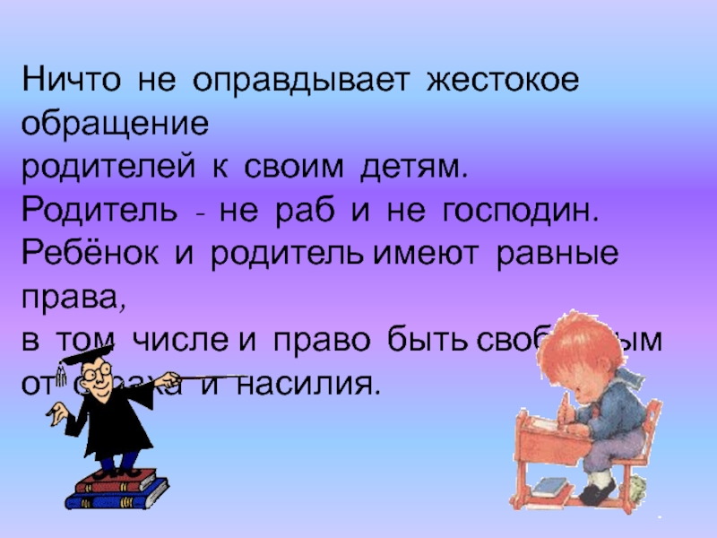 недопустимы по отношению к ребенку, непонимание, что не каждое наказание идет ему на пользу.