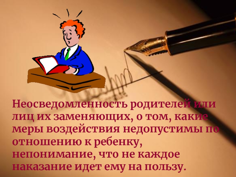 Слайд 14Неосведомленность родителей или лиц их заменяющих, о том, какие меры воздействия
