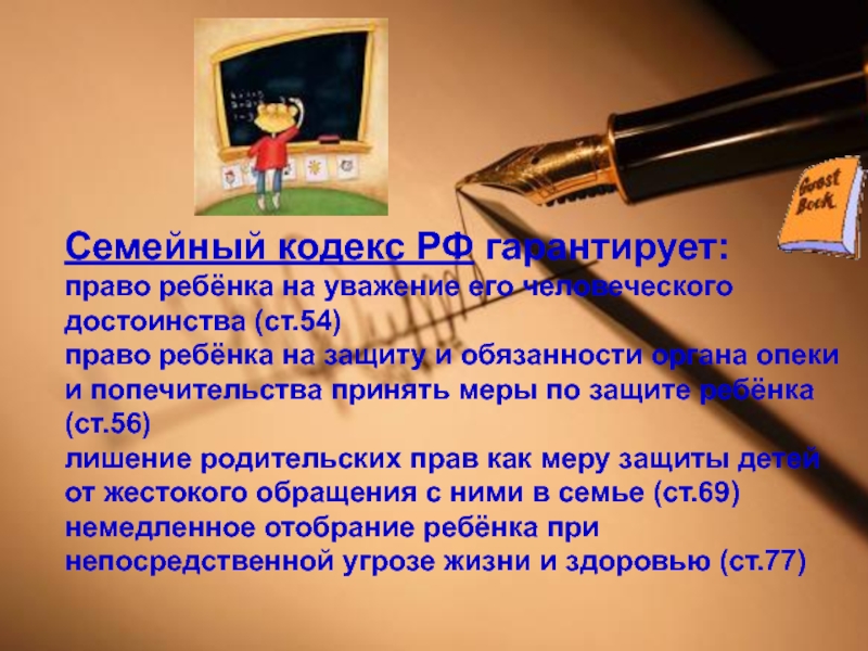 право ребёнка на защиту и обязанности органа опеки и попечительства принять меры по защите ребёнка (ст.56)