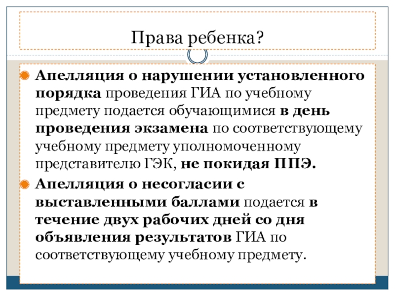 Апелляция о нарушении установленного порядка проведения ГИА по учебному предмету подается