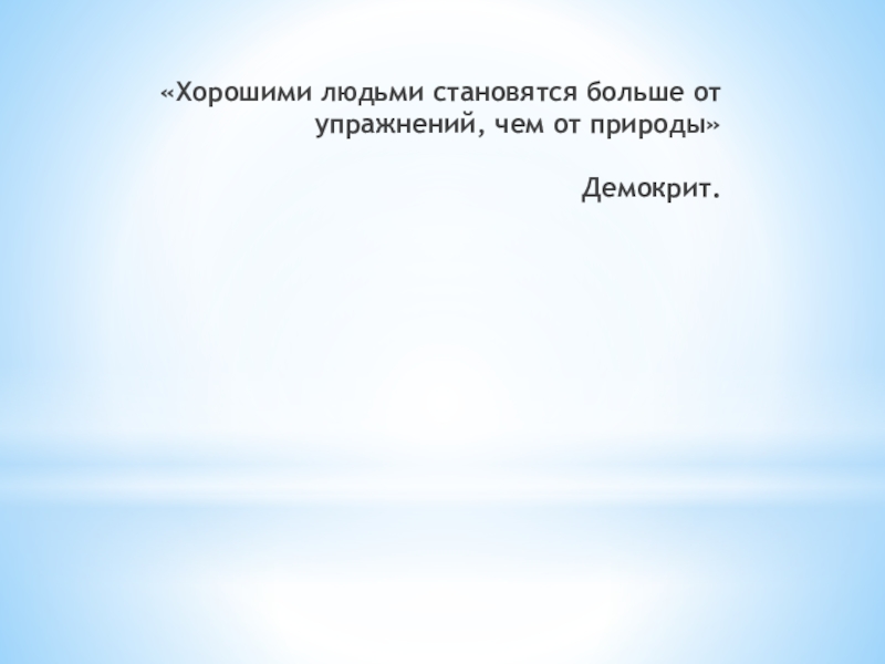 Слайд 2«Хорошими людьми становятся больше от упражнений, чем от природы»
