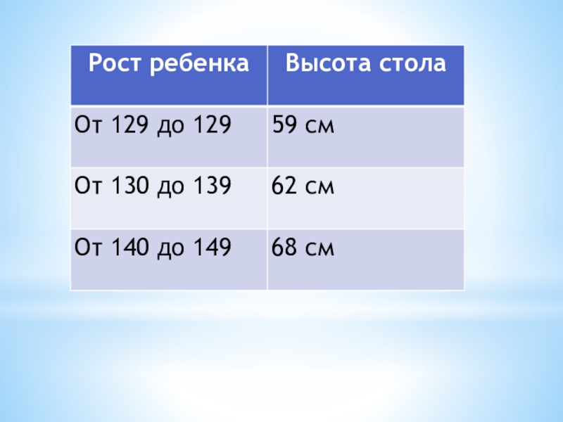 Слайд 14Разница между высотой стола и стула – от 21 до 27