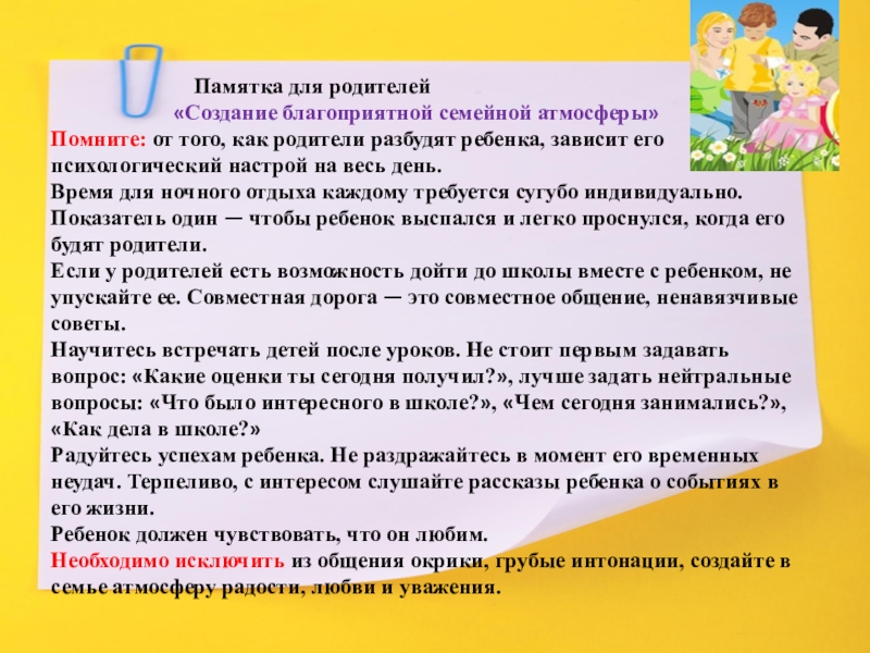 Необходимо исключить из общения окрики, грубые интонации, создайте в семье атмосферу радости, любви и уважения.