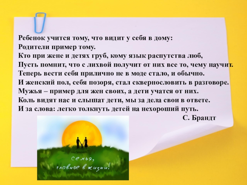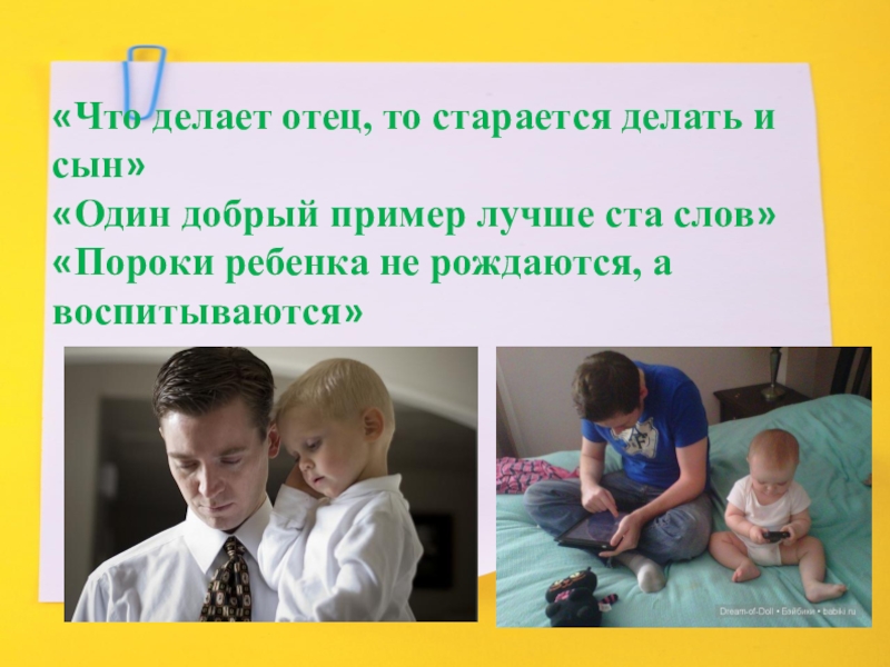 Слайд 3Ребенок учится тому, что видит у себя в дому: