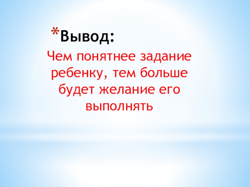 Чем понятнее задание ребенку, тем больше будет желание его выполнять
