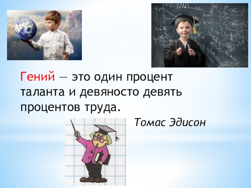 Слайд 3Гений — это один процент таланта и девяносто девять процентов труда.