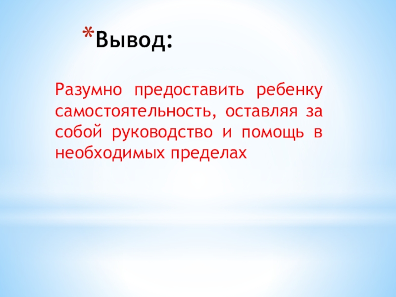 Разумно предоставить ребенку самостоятельность, оставляя за собой руководство и помощь в