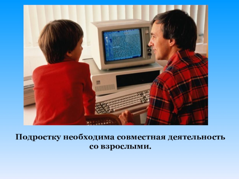 Слайд 17Подростку необходима совместная деятельность со взрослыми.