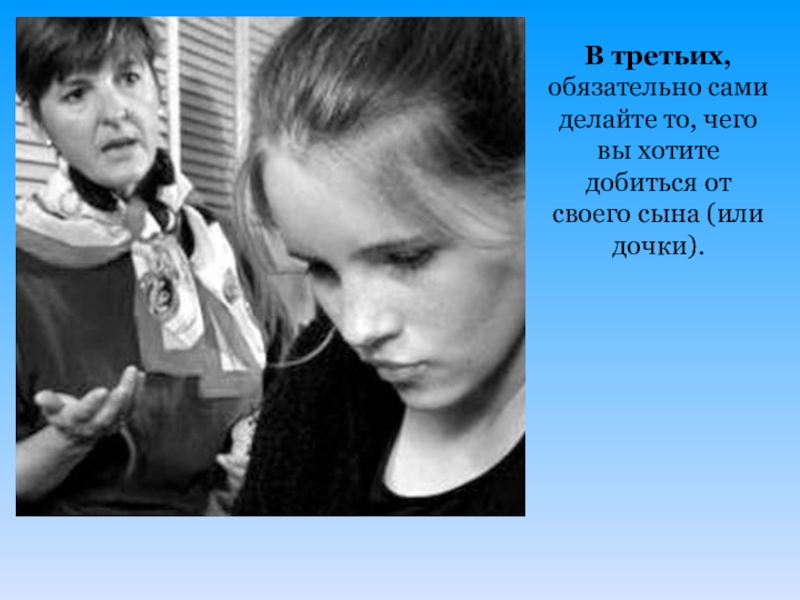 Слайд 15В третьих, обязательно сами делайте то, чего вы хотите добиться от