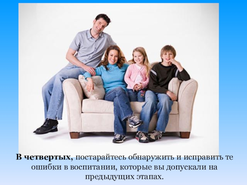 Слайд 16В четвертых, постарайтесь обнаружить и исправить те ошибки в воспитании, которые