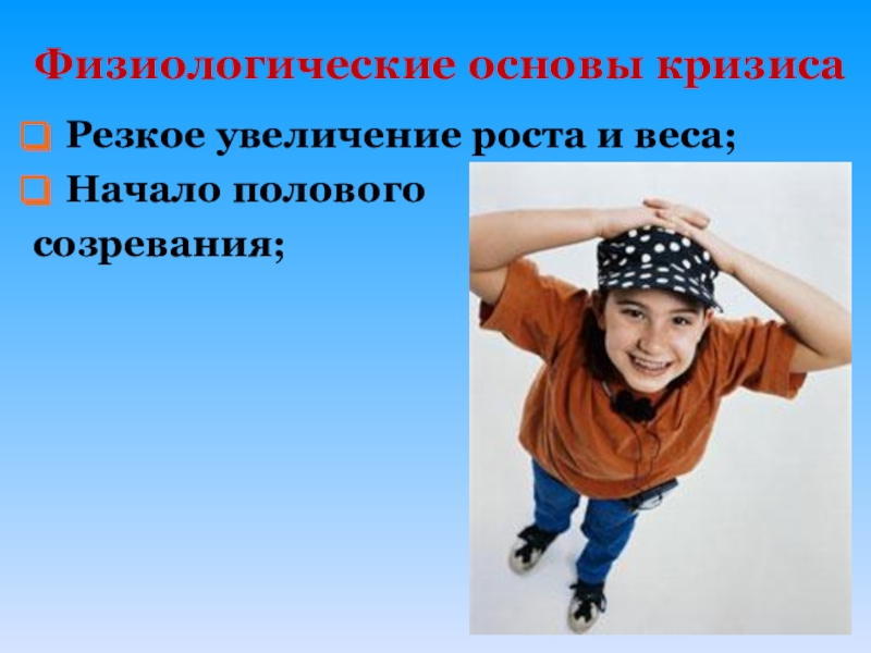 Физиологические основы кризисаРезкое увеличение роста и веса;Начало полового созревания;