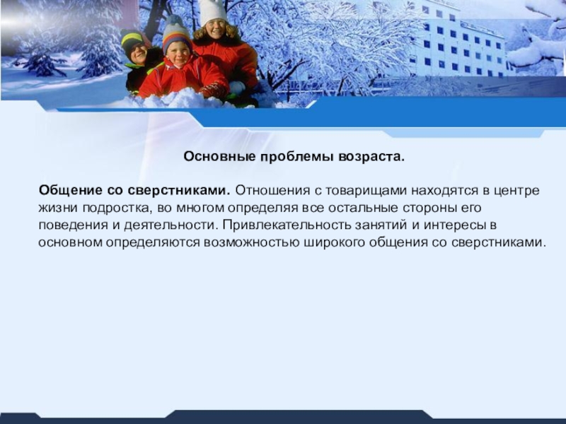 Основные проблемы возраста. Общение со сверстниками. Отношения с товарищами находятся в центре жизни подростка, во многом определяя