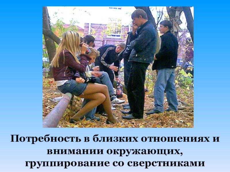 Слайд 9Потребность в близких отношениях и внимании окружающих, группирование со сверстниками