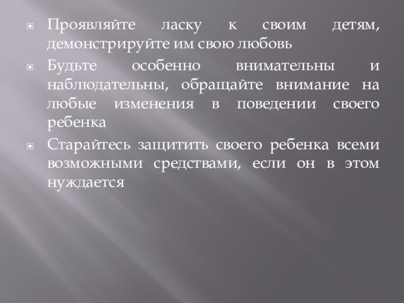Слайд 10Проявляйте ласку к своим детям, демонстрируйте им свою любовь