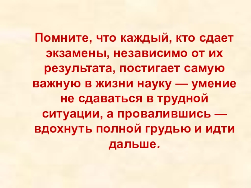 Слайд 19 Помните, что каждый, кто сдает экзамены, независимо от их