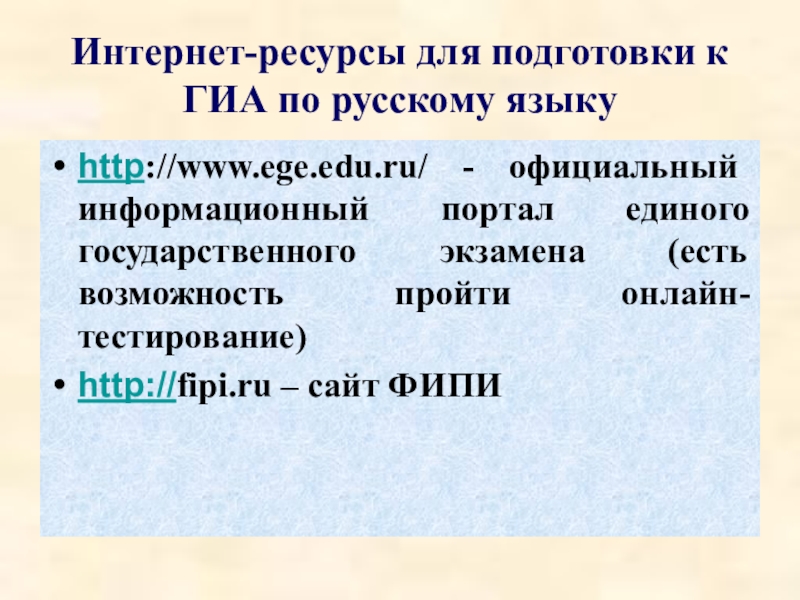 Слайд 16Интернет-ресурсы для подготовки к ГИА по русскому языку