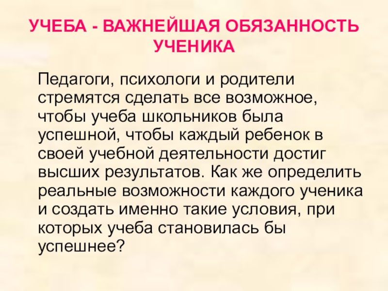 Слайд 20УЧЕБА - ВАЖНЕЙШАЯ ОБЯЗАННОСТЬ УЧЕНИКА