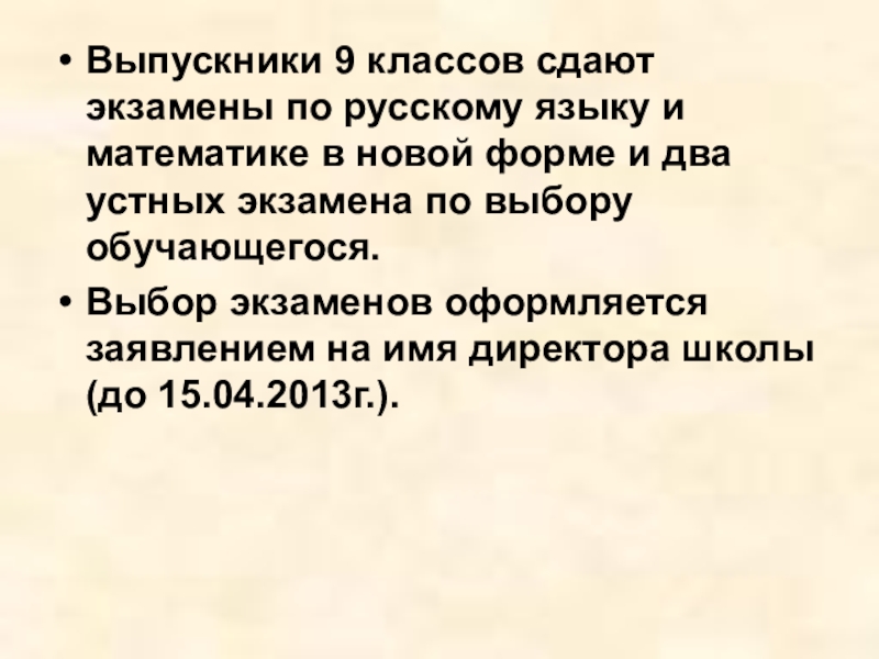 Слайд 9Выпускники 9 классов сдают экзамены по русскому языку и математике в