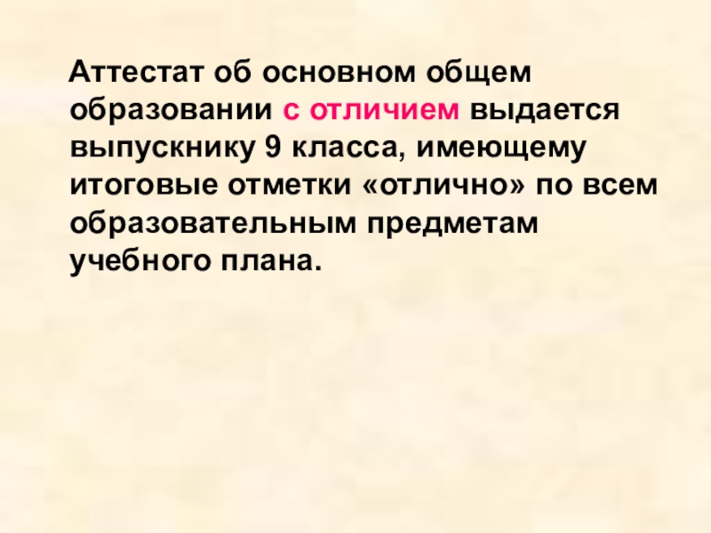 Слайд 14 Аттестат об основном общем образовании с отличием выдается выпускнику