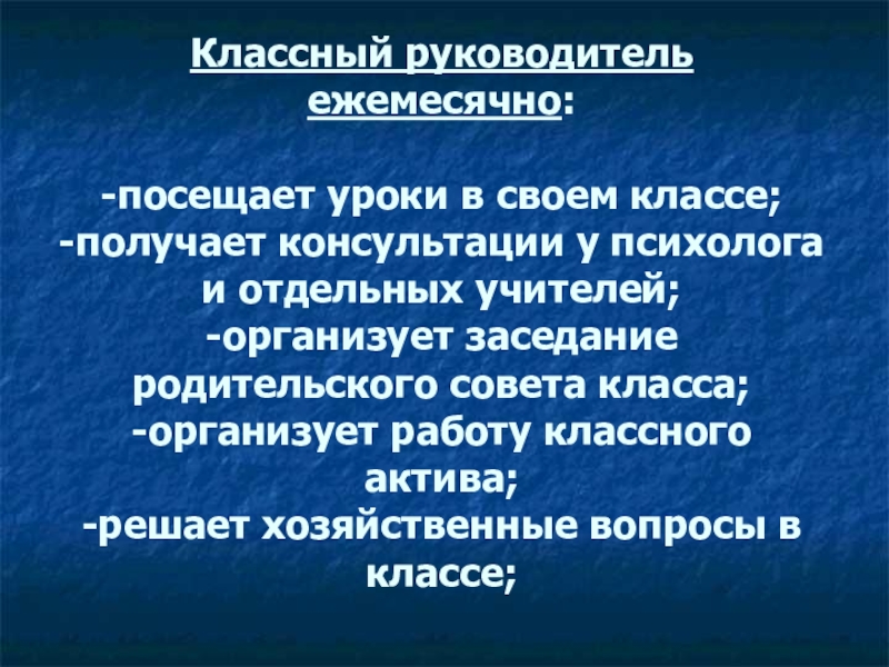 Слайд 21Классный руководитель ежемесячно: