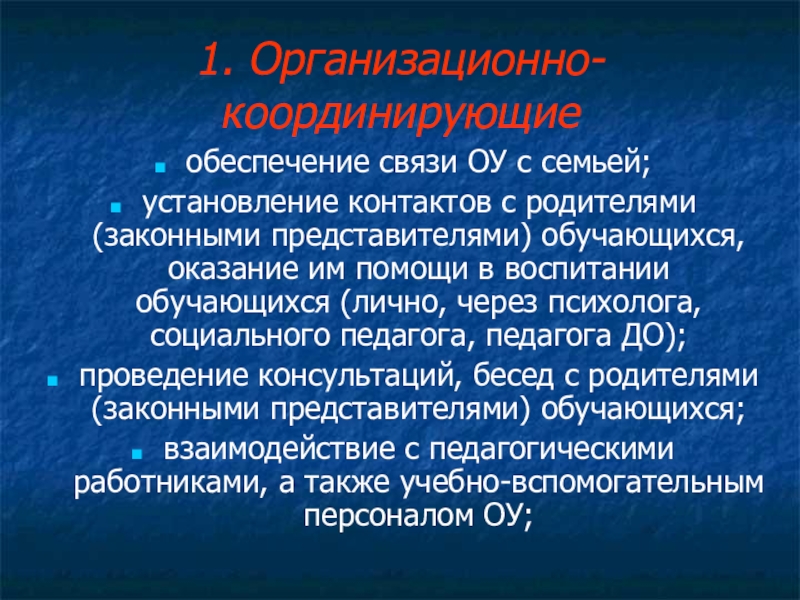 Слайд 111. Организационно-координирующие