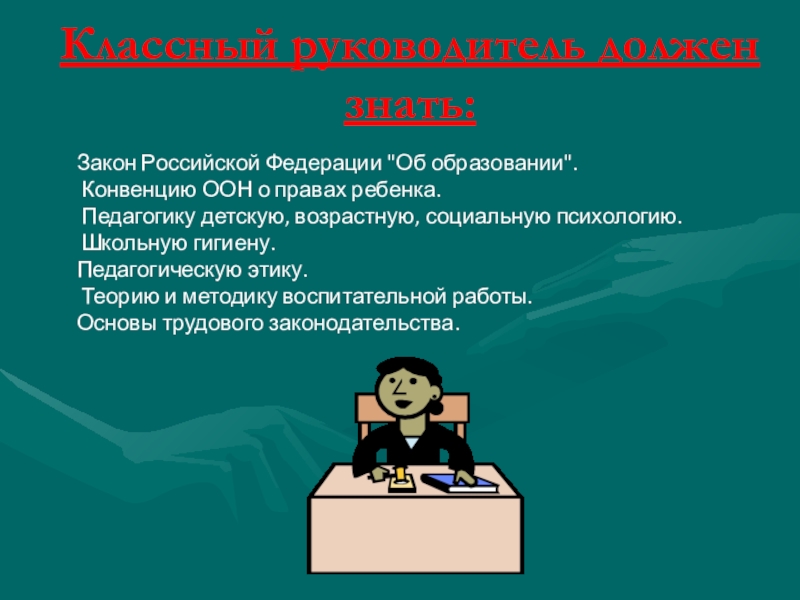 Слайд 7Классный руководитель должен знать: