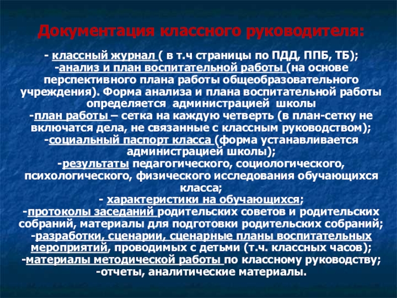 Документация классного руководителя: