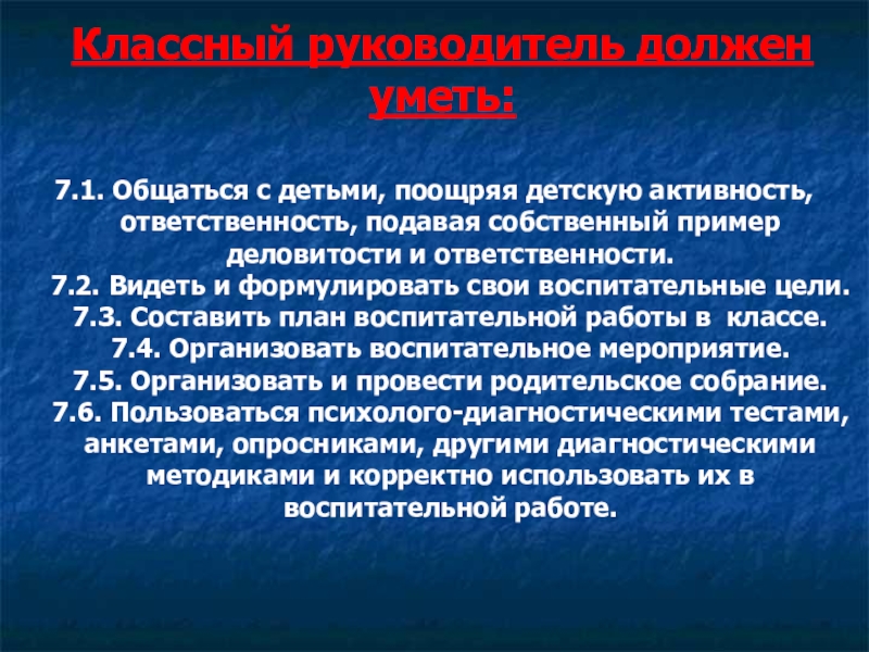 Слайд 17Классный руководитель должен уметь: